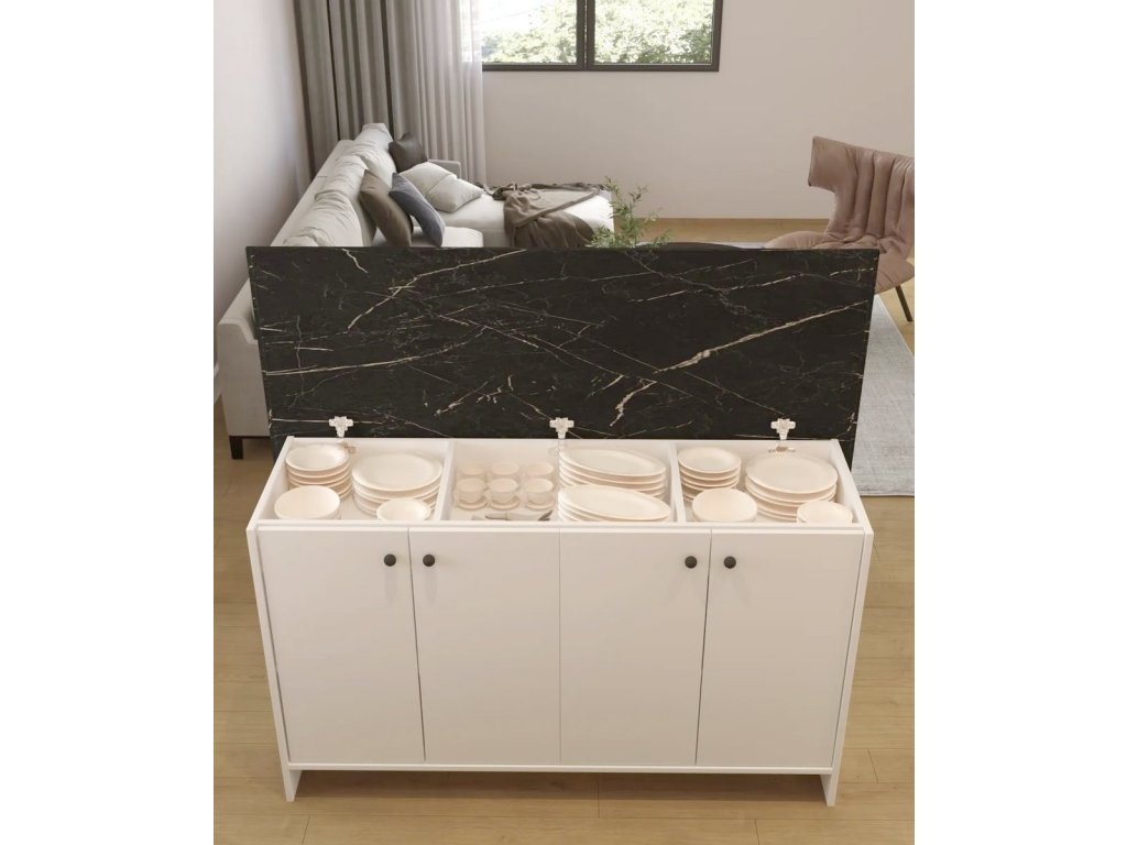 - Úložný prostor: za dvířkami 2 police + výklopná horní deska s přihrádkami