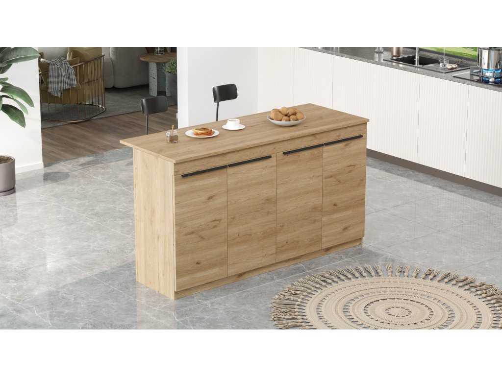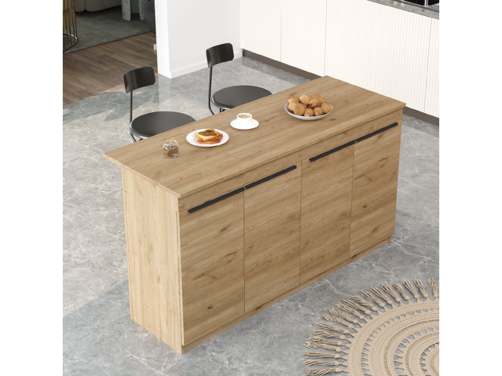 Kuchyňský ostrůvek je ideálním doplňkem do každé kuchyně, který přináší nejen styl, ale i praktičnost. Díky kvalitnímu LTD materiálu a robustnímu provedení je tento ostrůvek odolný a snadno se udržuje. Vybaven čtyřmi dvířky nabízí dostatek úložného prostoru pro uschování kuchyňského náčiní, potravin nebo jiných nezbytností.