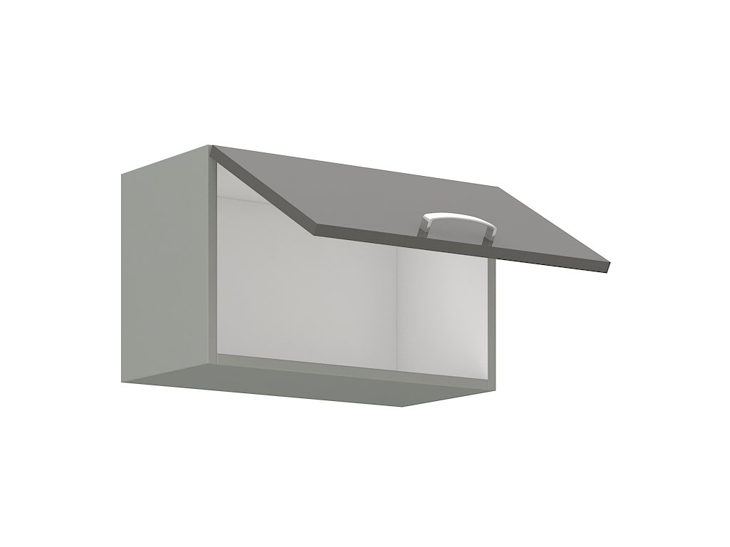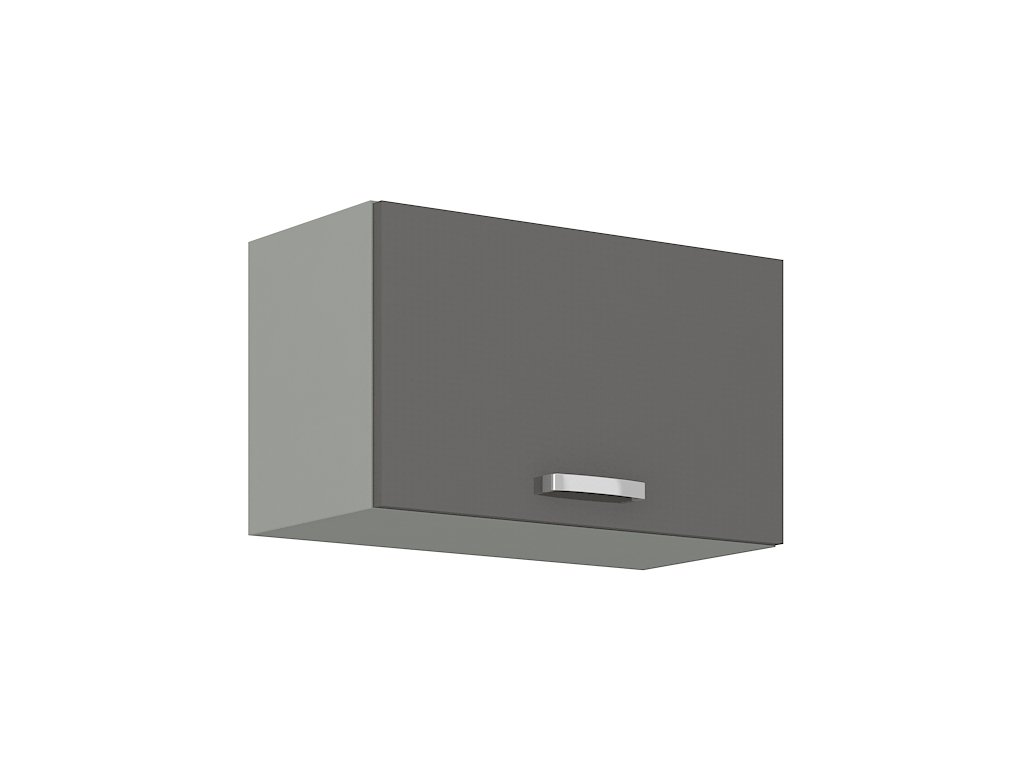 Horní skříňka nad digestoř GREY vyrobená z kvalitního lamina a MDF. Korpus je v barvě šedá a dvířka v barvě grey šedá v lesku. Rozměry skříňky - šířka 60 cm, výška 36 cm, hloubka 31 cm. Úchyty jsou z kovu. Dvířka jsou pomocí plynových pístů otvíraná nahoru. V naší nabídce naleznete další výběr skříněk k sestavení celé kuchyně.Doplňkové parametry