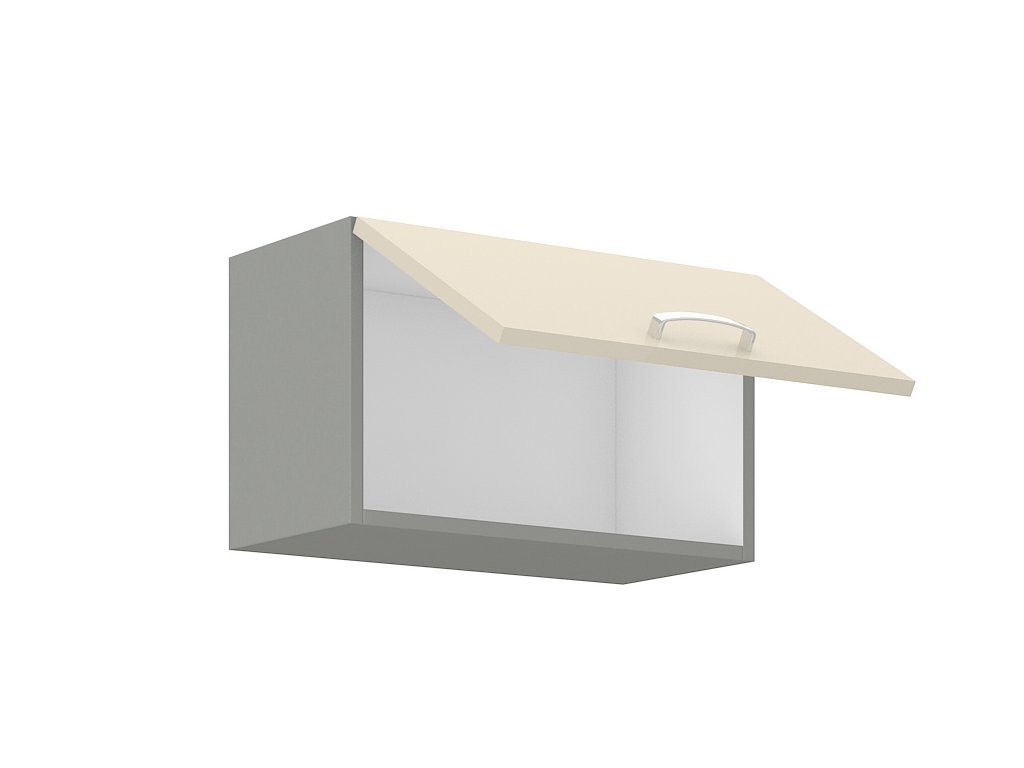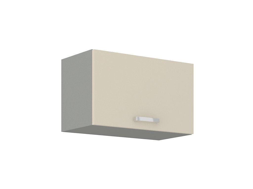 Horní skříňka nad digestoř KARMEN vyrobená z kvalitního lamina a MDF. Korpus je v barvě šedá a dvířka v barvě karmen krémová v lesku. Rozměry skříňky - šířka 60 cm, výška 36 cm, hloubka 31 cm. Úchyty jsou z kovu. Dvířka jsou pomocí plynových pístů otvíraná nahoru. V naší nabídce naleznete další výběr skříněk k sestavení celé kuchyně.Doplňkové parametry