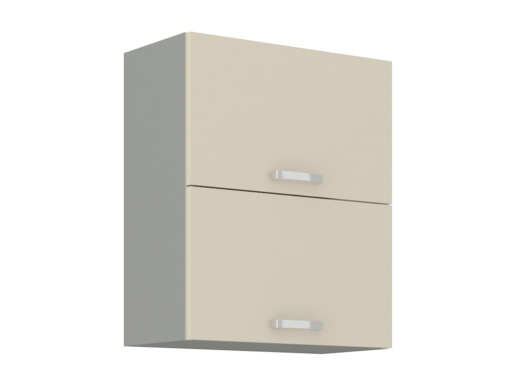 Horní výklopná skříňka dvojitá KARMEN vyrobená z kvalitního lamina a MDF. Korpus je v barvě šedá a dvířka v barvě karmen krémová v lesku. Rozměry skříňky - šířka 60 cm, výška 71,5 cm, hloubka 31 cm. Úchyty jsou z kovu. Dvířka jsou pomocí plynových pístů otvíraná nahoru. V naší nabídce naleznete další výběr skříněk k sestavení celé kuchyně.Doplňkové parametry