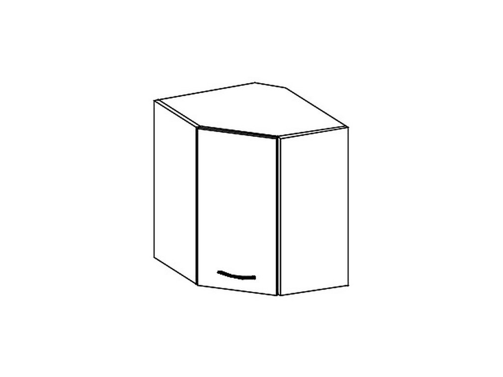 Horní skříňka rohová GREY vyrobená z kvalitního lamina a MDF. Korpus je v barvě šedá a dvířka v barvě grey šedá v lesku. Rozměry skříňky - šířka 59 x 59 cm, výška 71,5 cm, hloubka 31 cm. Úchyty jsou z kovu. Dvířka mají pravé otvírání. V naší nabídce naleznete další výběr skříněk k sestavení celé kuchyně.Doplňkové parametry