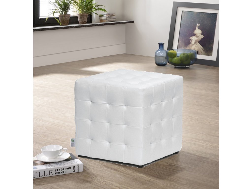 Taburet je potažen ekokůží bílé barvy. Tento praktický taburet bude elegantním doplňkem ve Vašem interiéru.Doplňkové parametry