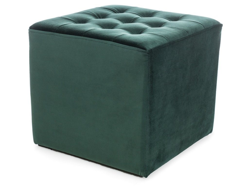 Měkký polstrovaný taburet - puf oceníte nejen jako pohodlnou opěrku pod nohy či na sezení, ale také jako elegantní doplněk do Vašeho interiéru. Čalounění je z látky aksamit v zelené barvě.Doplňkové parametry