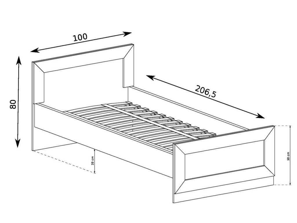 Postel 90 ze sektorové řady. Postel obsahuje deskový rošt, ale neobsahuje matraci, tu je třeba doobjednat, vhodný rozměr 90 x 200 cm. Výška postele u hlavy je 80 cm, u nohou 50 cm, výška od země do boku postele je 20 cm. Systém je exkluzivní kolekce navržena v duchu vintage. Celá řada se vyznačuje elegancí a jednoduchými tvary, které zaručují plné využití prostoru. Nábytek je vyroben z velmi kvalitní LTD o tloušťce 16 mm, horní deska zesílena na 32 mm, lišty na čele nábytku jsou MDF, hrany ABS. Tvrzené sklo ve vitrínách je jemně zdobené. Elegantní úchyty jsou z kovu. Barevné provedení - dub stoletý. Dodáváme v demontovaném stavu.Doplňkové parametry