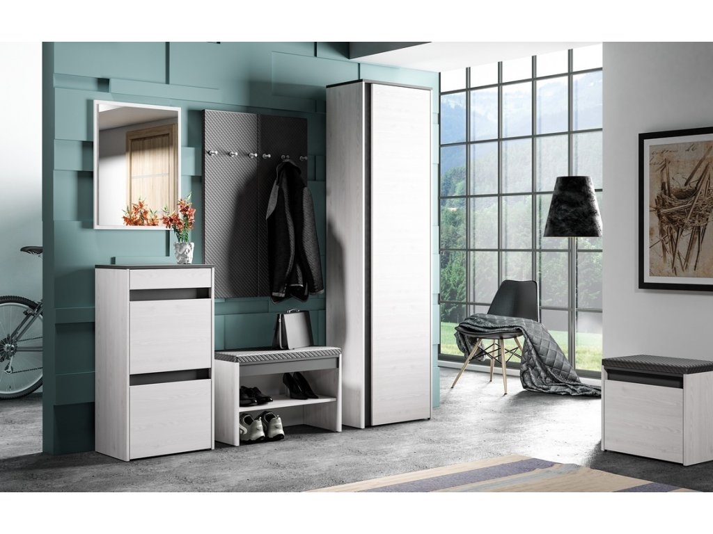 Čalouněná věšáková stěna je vyrobena z desky LTD potažena látkou v barvě antracit. Dodáváme v demontovaném stavu.Doplňkové parametry