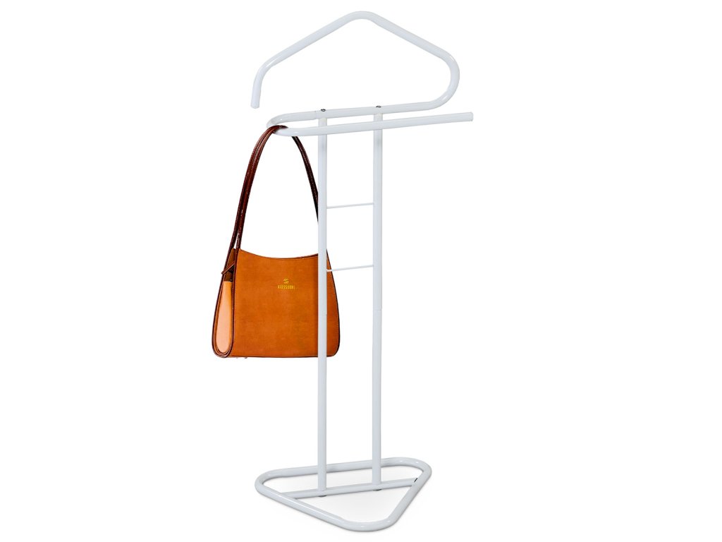 Praktický němý sluha v minimalistickém designu. Konstrukce je z kovových trubek pr. 19 mm. Povrchová úprava je v bílém matném práškovém laku. Výška 108 cm Vám umožní zavěšení oblečení i doplňků bez pomačkání. Nosnost stojanu jsou 4 kg, hmotnost necelé 2 kg. I proto je jednoduše přenositelný a lze ho umístit podle momentální potřeby i nálady. Stylem a jednoduchostí se hodí do jakéhokoli interiéru. Využití je nepřeberné, záleží jen na Vás.Doplňkové parametry