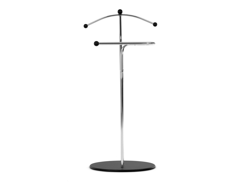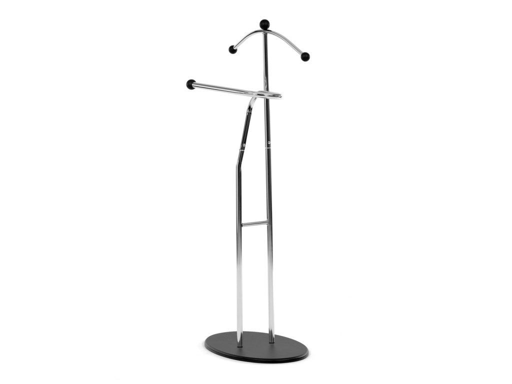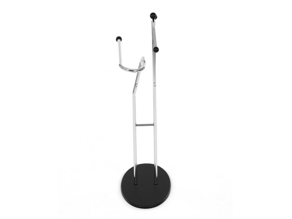 Němý sluha 83213 CR(BK) značky Autronic je praktický bytový doplněk s výškou 110 cm, který kombinuje pevnost kovové konstrukce s elegantním designem. Rám je vyroben z chromovaného kovu, který zajišťuje vysokou odolnost proti opotřebení a stabilitu, zatímco základna je z masivního kaučukovníku s černým mořením, což dodává produktu robustní a zároveň estetický vzhled. Konstrukce nabízí několik ramínek zakončených černými plastovými koncovkami, které umožňují bezpečné zavěšení oděvů, obleků či doplňků bez poškození materiálu. Pevná základna zajišťuje stabilitu i při větším zatížení a díky kompaktním rozměrům je vhodný do ložnic, šaten nebo kanceláří. Povrchová úprava chromu a černého moření podtrhuje moderní styl a snadnou údržbu produktu.Doplňkové parametry