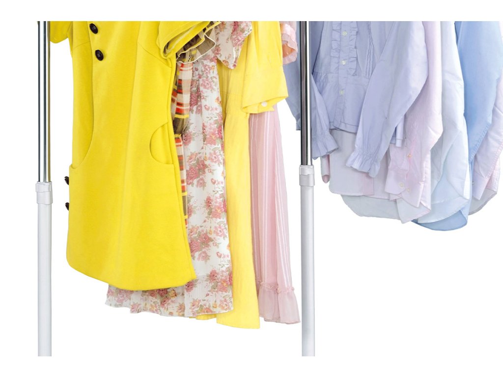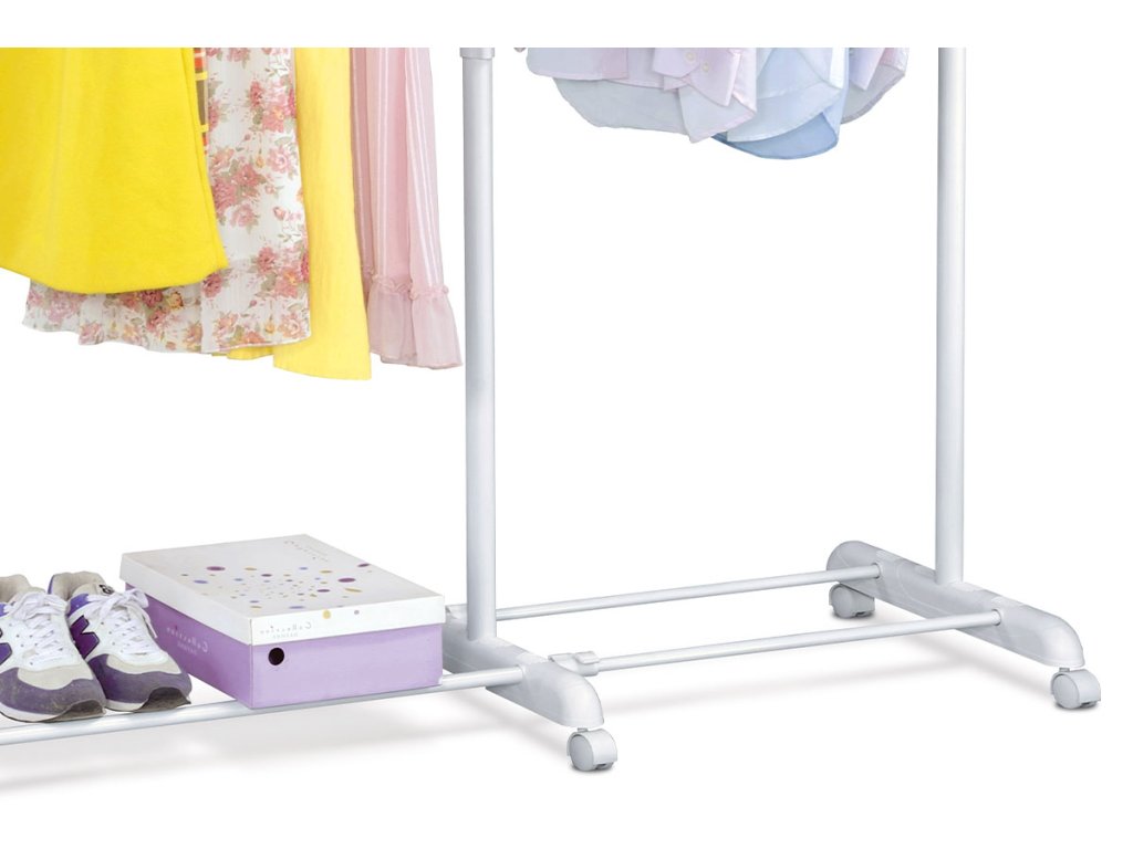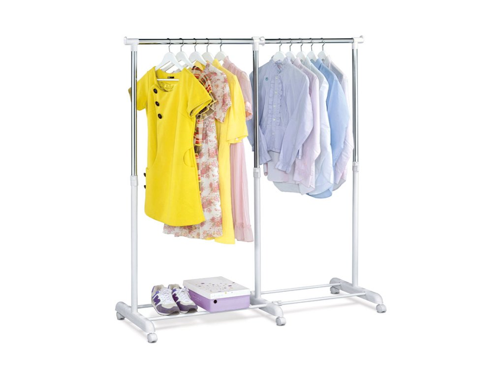 Praktický stojan na šaty, který lze rozšířit ze základní šířky 94 cm až na šířku 160 cm. Výškově lze nastavit od 94 cm do 167 cm. Provedení bílý plast a kovové části s chromovou úpravou. Plastová kolečka a přihrádky na odložení boty, či menších krabic.