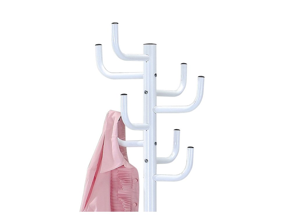 Moderní a praktický věšák v bílém vysokém lesku. Velmi oblíbený díky svému futuristickému designu. Věšák je kovový.