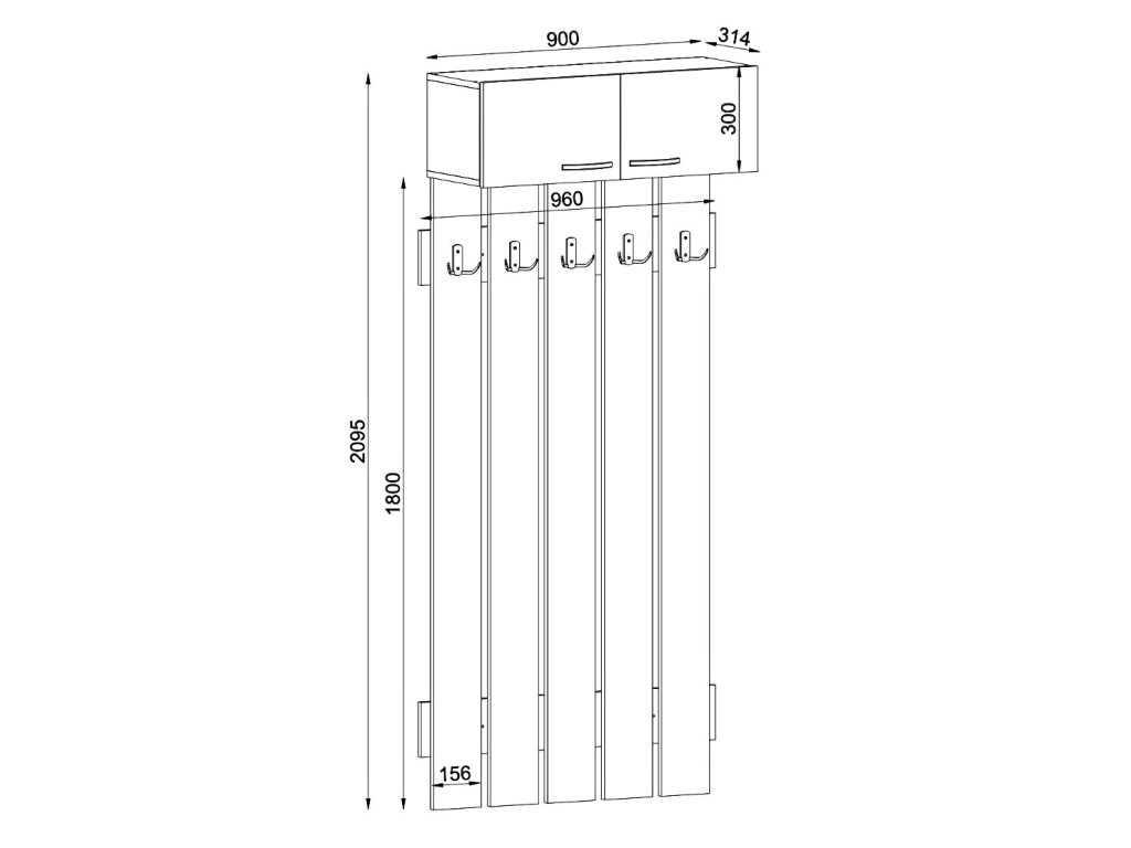 Věšák s horní skříňkou KMENTA bílá