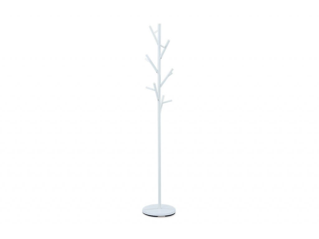Věšák stojanový, kovová konstrukce, bílý matný lak, výška 170 cm, nosnost 10 kg
