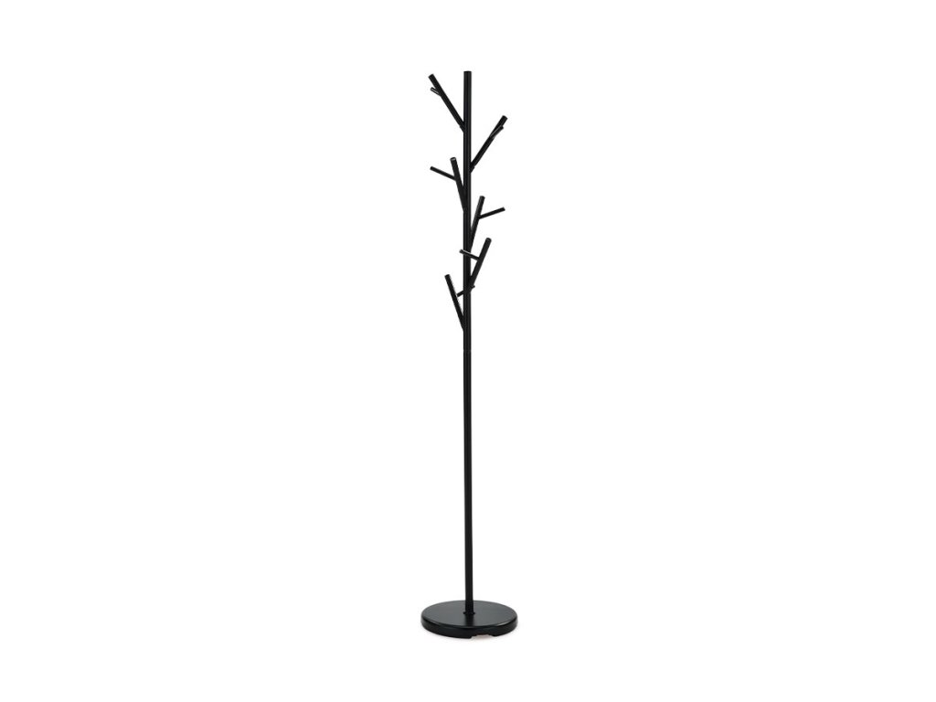 Stojanový věšák v černém matném provedení je vyroben z pevného kovu, který zajišťuje stabilitu a dlouhou životnost. Výška 170 cm nabízí dostatek prostoru pro zavěšení kabátů, bund i doplňků na několika větvích, které jsou rozmístěny asymetricky pro lepší přístupnost. Kulatá základna pevně drží věšák na místě a umožňuje nosnost až 10 kg. Jednoduchý a moderní design se hodí do různých interiérů, od kanceláří po domácnosti.Doplňkové parametry