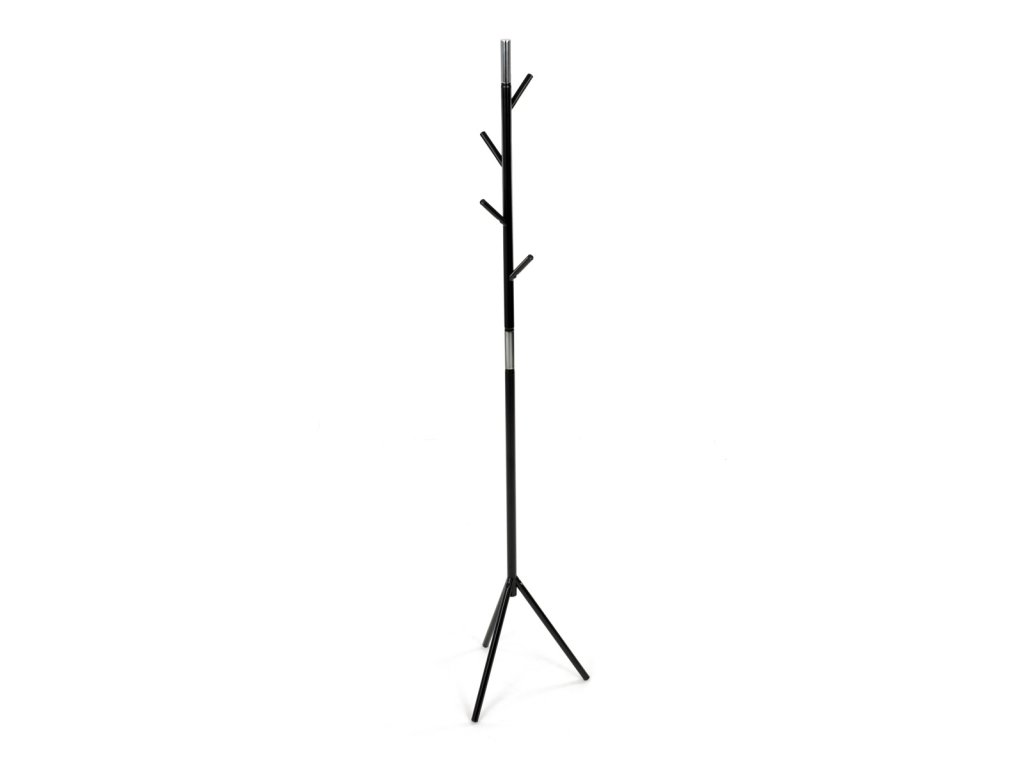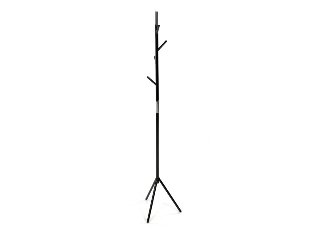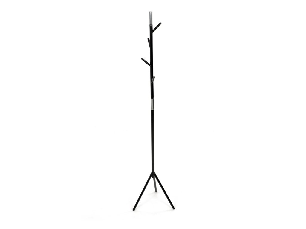 Věšák stojanový, výška 179 cm, kovová konstrukce, černý matný lak, nosnost 6 kg