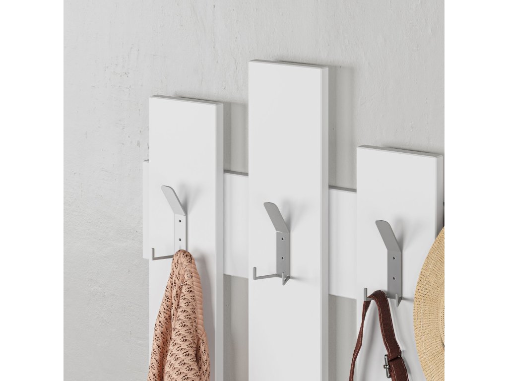 Tento nástěnný věšák je vyroben ze 100% dřevotřísky s melaminovým povlakem a je navržen tak, aby vydržel. Tloušťka 18 mm zajišťuje robustnost a stabilitu, zatímco bílá barva dodává vašemu dekoru nádech elegance. Rozlučte se s chatrnými háčky, které se snadno zlomí – náš závěsný věšák na kabáty je navržen tak, aby vydržel zkoušku času.