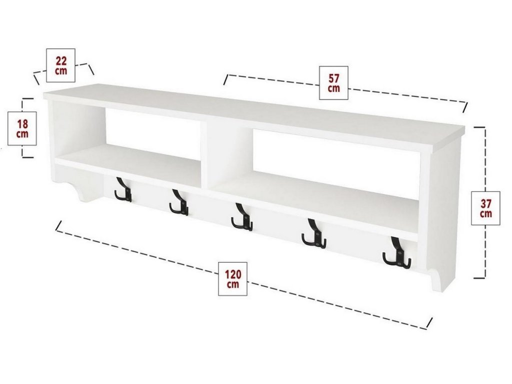 Závěsný věšák s policí je vyroben z kvalitní desky LTD nenáročné na údržbu, v barevném provedení bílá. Tloušťka materiálu - 18 mm. Dodáváme v demontovaném stavu.Doplňkové parametry