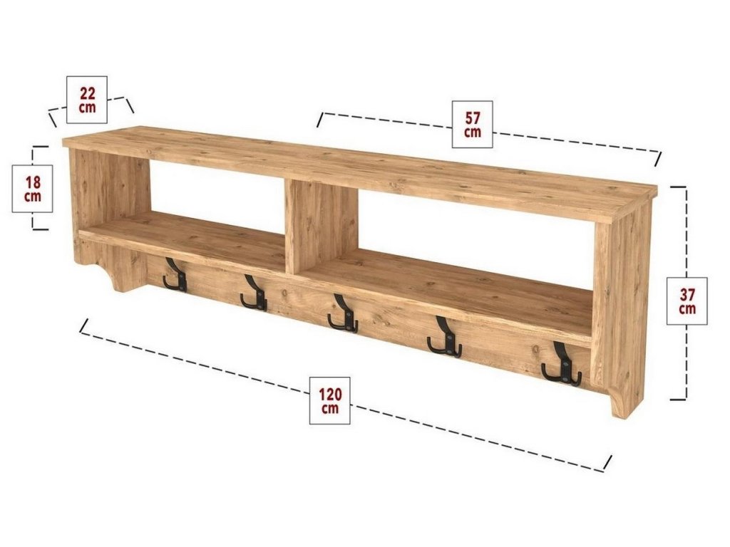 Závěsný věšák s policí je vyroben z kvalitní desky LTD nenáročné na údržbu, v barevném provedení borovice. Tloušťka materiálu - 18 mm. Dodáváme v demontovaném stavu.Doplňkové parametry