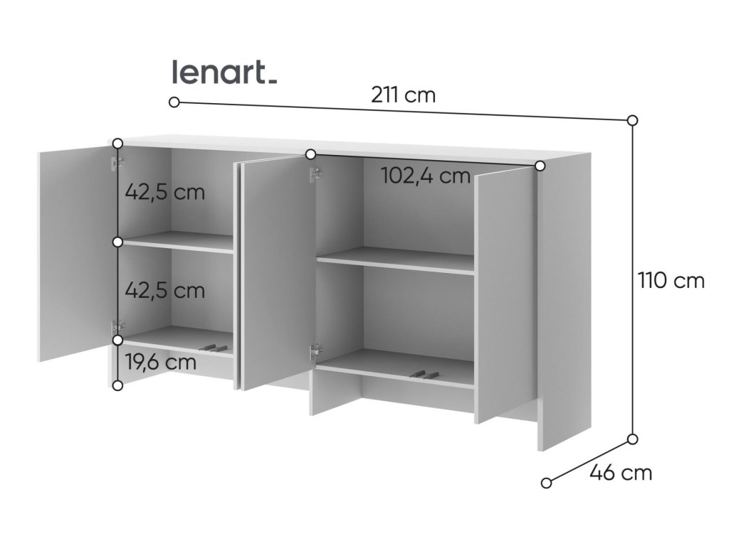 Nádstavec k výklopné posteli široká 90 bílá. Nádstavec má 4 dvířka. Rozměry viz obrázek. Nábytek je vyroben z kvalitního lamina s ABS hranou. Lamino je odolné proti poškrábání, poškození, vlhkosti a vysokým teplotám. Dodáváme v demontovaném stavu.Doplňkové parametry