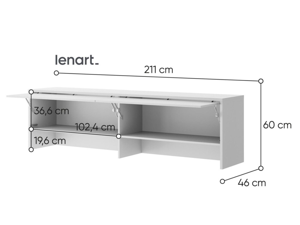 Nádstavec k výklopné posteli široká 140 bílá. Nádstavec má 2 dvířka. Rozměry viz obrázek. Nábytek je vyroben z kvalitního lamina s ABS hranou. Lamino je odolné proti poškrábání, poškození, vlhkosti a vysokým teplotám. Dodáváme v demontovaném stavu.Doplňkové parametry