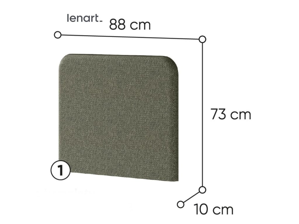 Komfortní polstrovaný záhlavník k vysoké posteli široké 90 cm Bed Concept pro vetší pohodlí. Rozměry viz obrázek. Vyroben je z pevné polyuretanové pěny (PUR) potažený látkou 100% PES LUKKA 38 v barvě šedozelená. V nabídce máme i jiné barevné provedení.