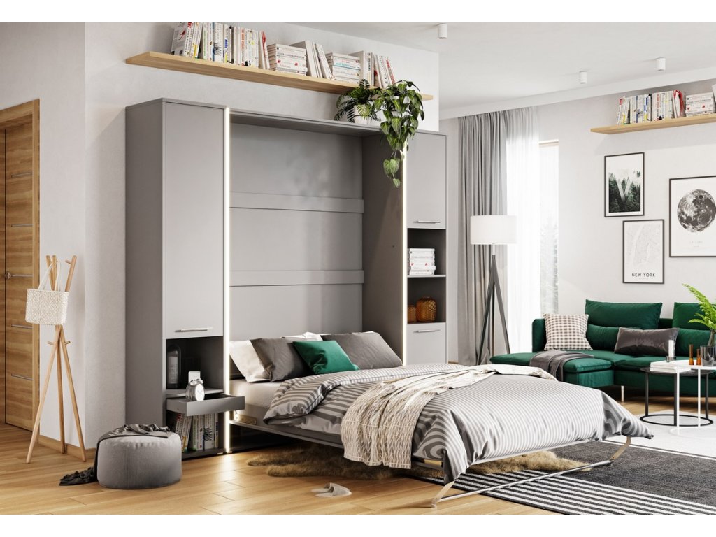 Vysoká výklopná postel 140. Rozměry viz obrázek. Každý kus nábytku v novém provedení Vám umožní dokonale zařídit menší ložnici nebo obývací, dětský či studentský pokoj. Se sklápěcí postelí Vás už nebude trápit malý prostor Vaší domácnosti. Díky stabilní konstrukci zaručuje pohodlný odpočinek. Bezpečnost je velmi důležitá a tak má naše sklápěcí postel mechanismus, kterým zablokujete postel proti samovolnému otevření. Při sklápění postele FUNKCE STOP zajistí bezpečné otevírání i zavírání. Tento výjimečný systém Vám umožní manipulaci pouze jedním prstem. Když je postel sklopená, vypadá jako běžná skříň. Vyklopením se vytáhne celá šířka postele. Při rozložení postele má hloubku 237 cm. Rám je nutno přišroubovat ke zdi, nosnost postele je 200 kg. Rošt postele je v ceně, matrace není součástí, je potřeba ji dokoupit. Doporučujeme velikost 140 x 200 x výšku do 18 cm. Po sklopení postele vzniká prostor pod postelí o výšce 20,4 cm. Nábytek je vyroben z kvalitního lamina s ABS hranou. Lamino je odolné proti poškrábání, poškození, vlhkosti a vysokým teplotám. Postel nabízíme v několika velikostech a barevných provedeních. Dodáváme v demontovaném stavu. Můžete si prohlédnout prezentační video, klikněte ZDE.Doplňkové parametry