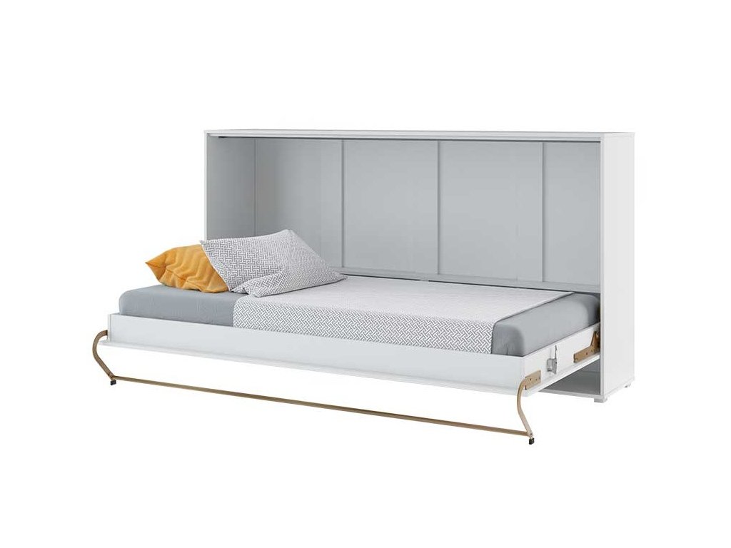 Široká výklopná postel 90 bílá lesk/bílá mat. Korpus nábytku je v matné bílé barvě, čelo nábytku je v bílém lesku. Rozměry viz obrázek. Každý kus nábytku v novém provedení Vám umožní dokonale zařídit menší ložnici nebo obývací, dětský či studentský pokoj. Se sklápěcí postelí Vás už nebude trápit malý prostor Vaší domácnosti. Díky stabilní konstrukci zaručuje pohodlný odpočinek. Bezpečnost je velmi důležitá a tak má naše sklápěcí postel mechanismus, kterým zablokujete postel proti samovolnému otevření. Při sklápění postele FUNKCE STOP zajistí bezpečné otevírání i zavírání. Tento výjimečný systém Vám umožní manipulaci pouze jedním prstem. Když je postel sklopená, vypadá jako běžná komoda. Při rozložení postele má hloubku 127 cm. Vyklopením se vytáhne celá šířka postele. Rám je nutno přišroubovat ke zdi, nosnost postele je 100 kg. Rošt postele je v ceně, matrace není součástí, je potřeba ji dokoupit. Doporučujeme velikost 90 x 200 x výšku do 18 cm. Po sklopení postele vzniká prostor pod postelí o výšce 20,4 cm. Nábytek je vyroben z kvalitního lamina s ABS hranou. Lamino je odolné proti poškrábání, poškození, vlhkosti a vysokým teplotám. Postel nabízíme v několika velikostech a barevných provedeních. Dodáváme v demontovaném stavu. Můžete si prohlédnout prezentační video, klikněte ZDE.Doplňkové parametry