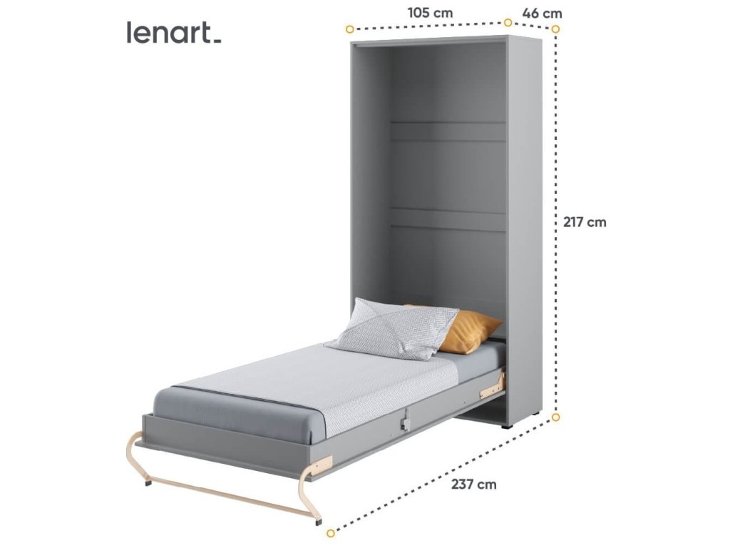 Vysoká výklopná postel 90. Rozměry viz obrázek. Každý kus nábytku v novém provedení Vám umožní dokonale zařídit menší ložnici nebo obývací, dětský či studentský pokoj. Se sklápěcí postelí Vás už nebude trápit malý prostor Vaší domácnosti. Díky stabilní konstrukci zaručuje pohodlný odpočinek. Bezpečnost je velmi důležitá a tak má naše sklápěcí postel mechanismus, kterým zablokujete postel proti samovolnému otevření. Při sklápění postele FUNKCE STOP zajistí bezpečné otevírání i zavírání. Tento výjimečný systém Vám umožní manipulaci pouze jedním prstem. Když je postel sklopená, vypadá jako běžná skříň. Při rozložení postele má hloubku 237 cm. Vyklopením se vytáhne celá šířka postele. Rám je nutno přišroubovat ke zdi, nosnost postele je 100 kg. Rošt postele je v ceně, matrace není součástí, je potřeba ji dokoupit. Doporučujeme velikost 90 x 200 x výšku do 18 cm. Po sklopení postele vzniká prostor pod postelí o výšce 20,4 cm. Nábytek je vyroben z kvalitního lamina s ABS hranou. Lamino je odolné proti poškrábání, poškození, vlhkosti a vysokým teplotám. Postel nabízíme v několika velikostech a barevných provedeních. Dodáváme v demontovaném stavu. Můžete si prohlédnout prezentační video, klikněte ZDE.Doplňkové parametry