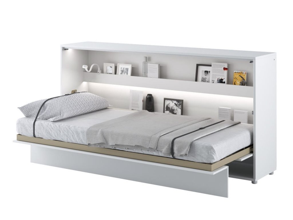 Široká výklopná postel 90 bílá lesk/bílá mat. Rozměry viz obrázek. Se sklápěcí postelí Vás už nebude trápit malý prostor Vaší domácnosti. Díky stabilní konstrukci zaručuje pohodlný odpočinek. Pneumatický mechanismus sklápění postele zajistí bezpečné otevírání a je doplněn SOFT CLOSE systémem tichého zavírání. Tento výjimečný systém Vám umožní manipulaci pouze jedním prstem. Když je postel sklopená, vypadá jako běžná skříň. Vyklopením se vytáhne celá šířka postele. Při lozložení postele má hloubku 118 cm. Uvnitř skříně jsou praktické police na knížky nebo dekorační předměty, vše máte na dosah ruky. Maximální zatížení polic je 5 kg. Rám je nutno přišroubovat ke zdi, nosnost postele je 100 kg. Rošt postele je v ceně, matrace není součástí, je potřeba ji dokoupit. Doporučujeme velikost 90 x 200 x výšku do 18 cm. Po sklopení postele vzniká prostor pod postelí o výšce 24,9 cm. Nábytek je vyroben z kvalitního lamina s ABS hranou. Lamino je odolné proti poškrábání, poškození, vlhkosti a vysokým teplotám. Postel nabízíme v několika velikostech a barevných provedeních. K posteli je možné dokoupit LED osvětlení. Dodáváme v demontovaném stavu. Můžete si prohlédnout prezentační video, klikněte ZDE.